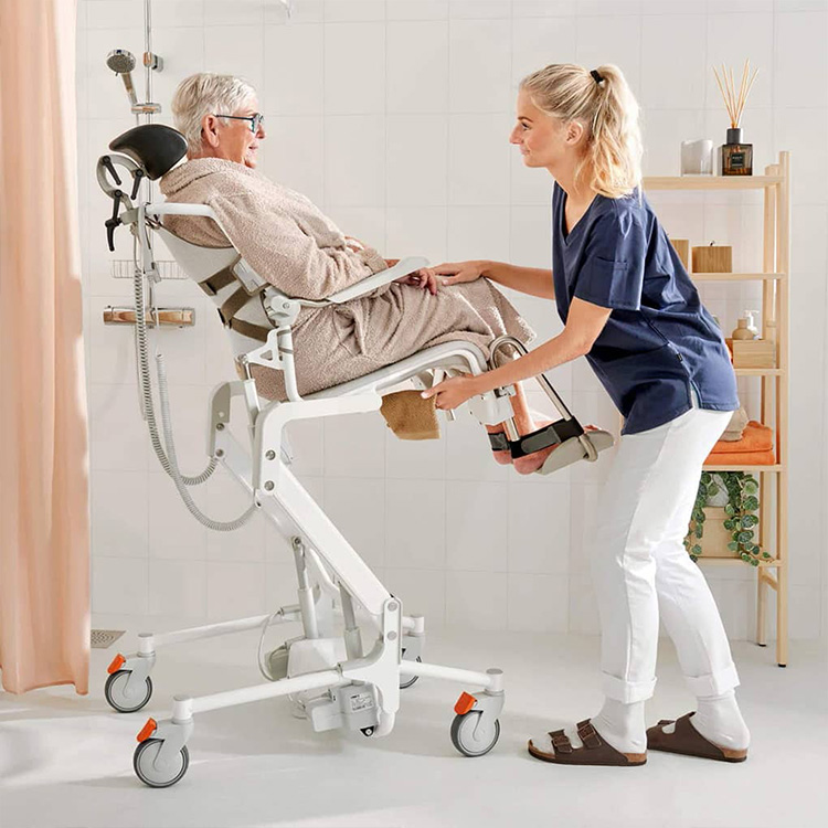 A compact, powered, mobile shower commode with adjustable height and tilt function, which can be used for showering, toileting and transportation. It is designed with both caregivers’ and users’ needs in mind, making it highly suitable for various settings including homecare, hospital and long term care facilities. Alto has exceptional manoeuvrability and ergonomic 360 – degree access, specifically designed to make personal care tasks easier for the carer while ensuring comfort for the user.