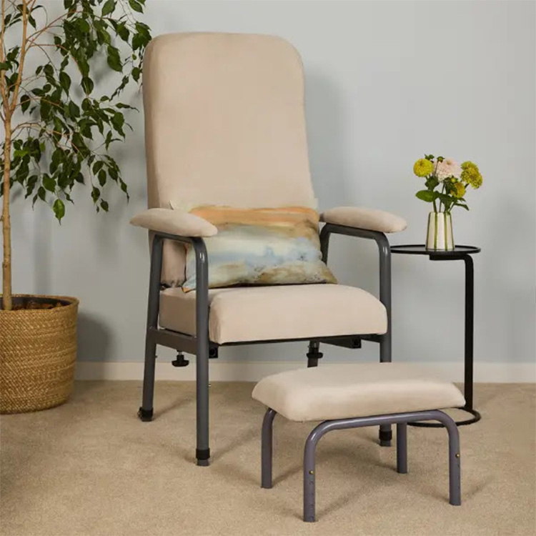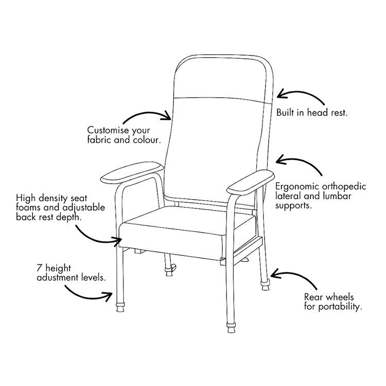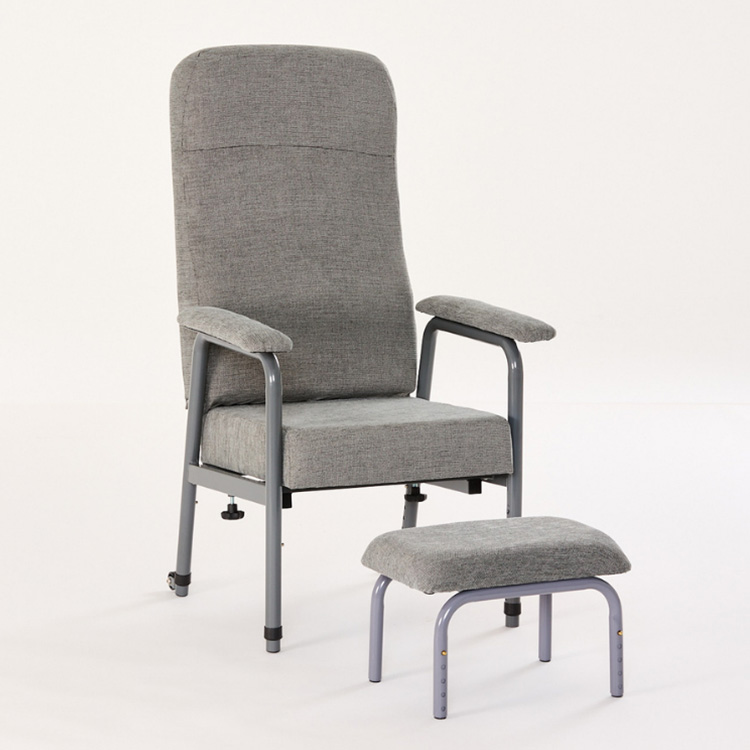 A characteristic blend of functionality, comfort and style. The Hoffman Chair ensures optimum seating for any user, with ergonomic support and seat height adjustment. Choose the fabric and colour to compliment your space and home aesthetic. Enjoy comfort with the padded, height adjustable footstool. With five height levels and an angle for heel pressure offload, it’s ideal for home or facility use.