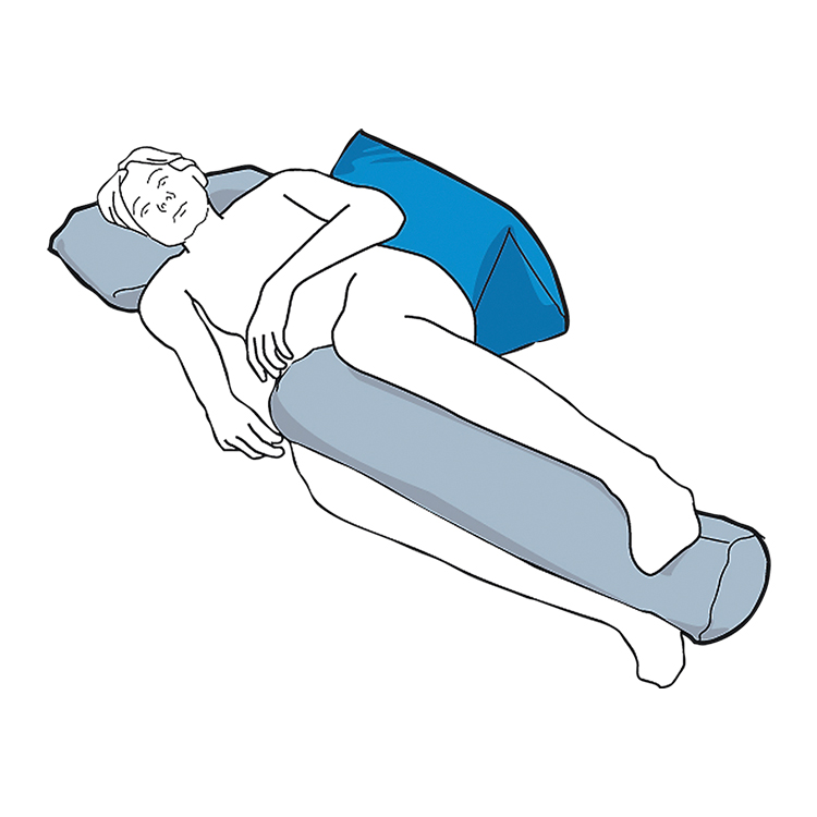 The Delta cushion can create lateral stability either alone, with one on each side or an extra pillow to create a neutral position in the knee and hip joints. It can also be used in a semi fowler position by placing it under the legs.